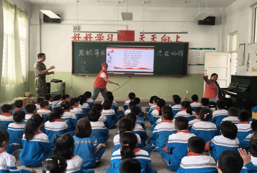 志愿服务队队员们充分发挥了作为退役军人和大学生的双重身份优势,在教唱军歌的同时,以亲身经历讲述军营和校园成长成才故事、传播国防知识、开展国防教育,在学生幼小的心里播下爱国的种子。