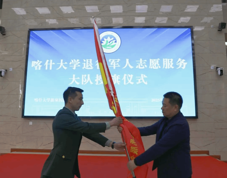 2025年3月13日,喀什大学率先在南疆地区成立首个高校退役军人服务站,同时组建退役军人志愿服务大队。退役学生们曾身着“橄榄绿”,保家卫国,如今换上“志愿红”,成为喀什大学又一张亮丽的“名片”。